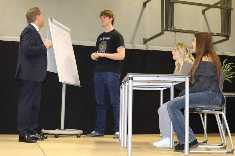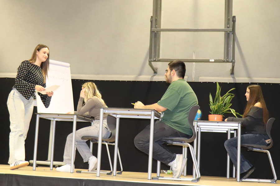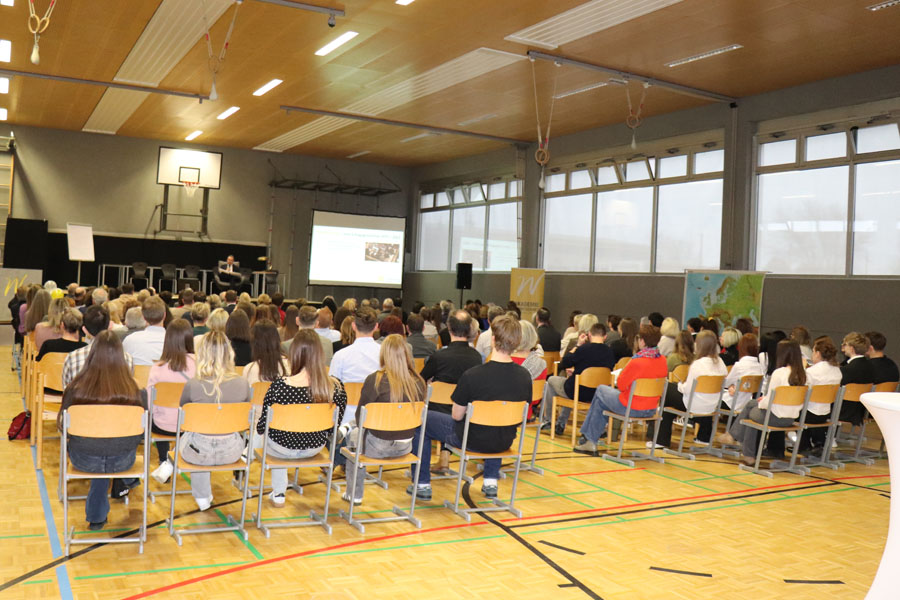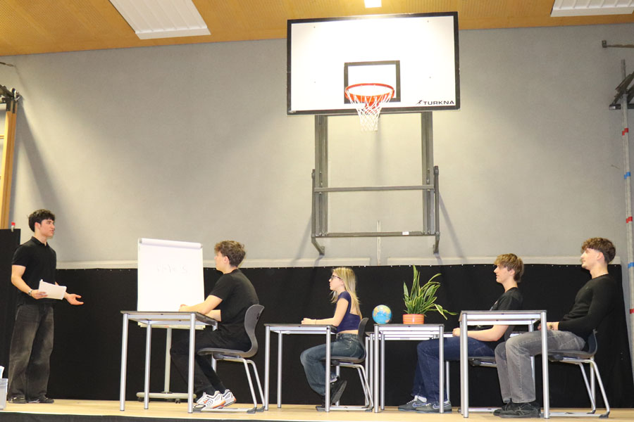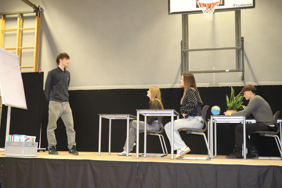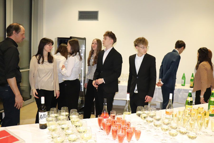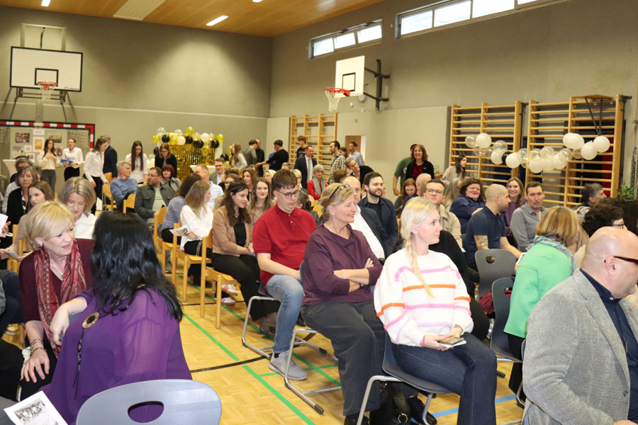 Ein weiterer Programmpunkt war ein Rückblick auf die letzten 50 Jahre im Rahmen einer „Märchenstunde“, die vom Herrn Direktor gestaltet wurde, und beim Publikum, bestehend aus Eltern, Lehrkräften, ehemaligen Lehrkräften und Absolventen, großen Anklang fand. Zusätzlich wurden Videos von Absolventinnen und Absolventen der Schule gezeigt, die deren weiteren Wege und Erfolge nach der Schulzeit präsentierten.